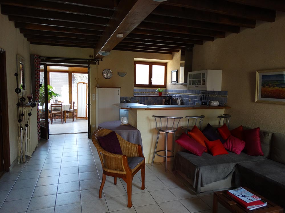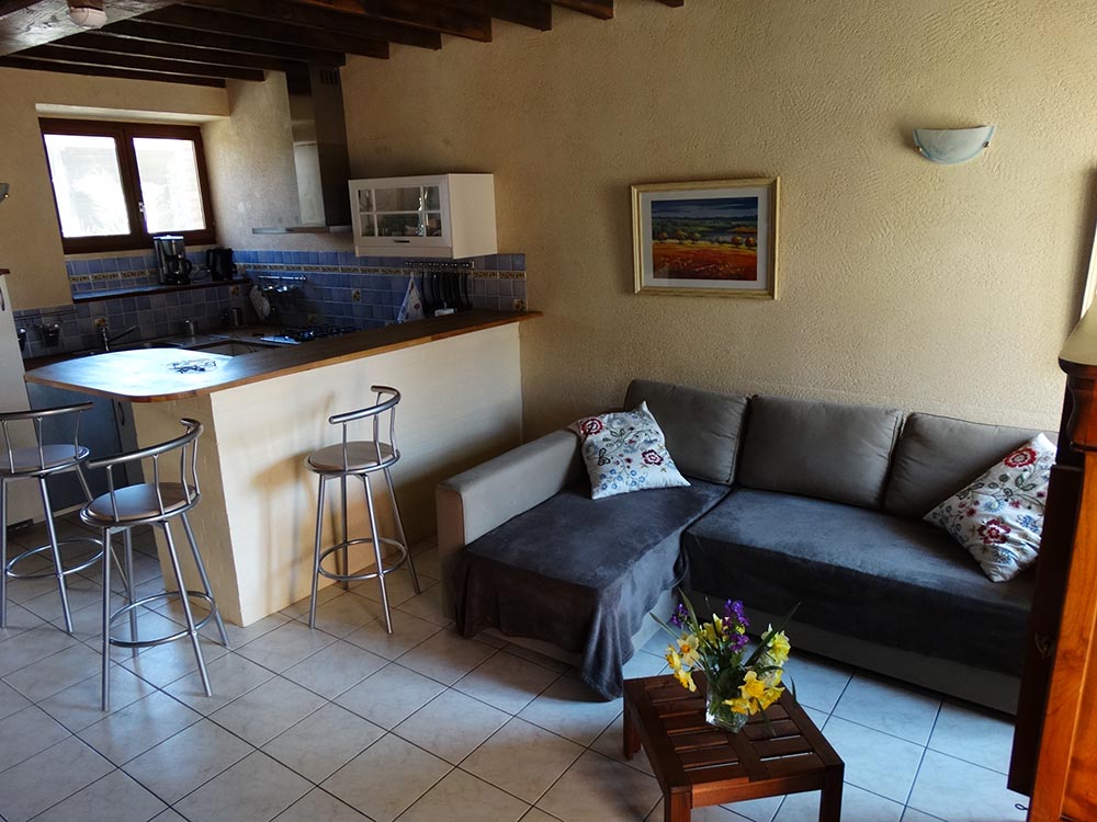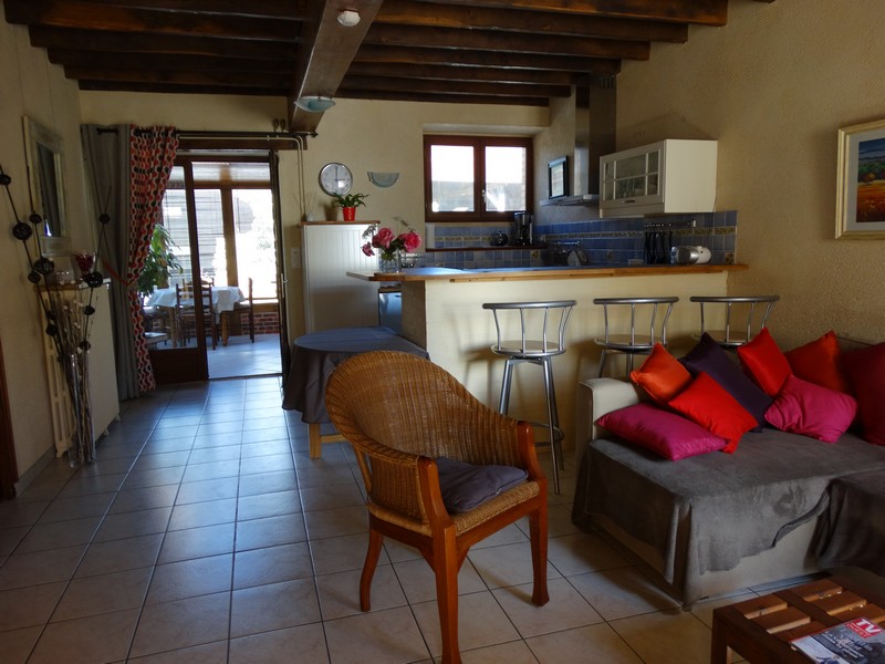 Ce gîte de plain pied comporte un salon avec un canapé-lit pour 2 couchages, une cuisine intégrée, une véranda meublée, une chambre avec 2 lits de 90 modulables en lit double, une salle d’eau et wc séparés. Matériel bébé sur demande. Chauffage au fuel inclus dans les tarifs semaine. Parking sur place sous abri couvert.