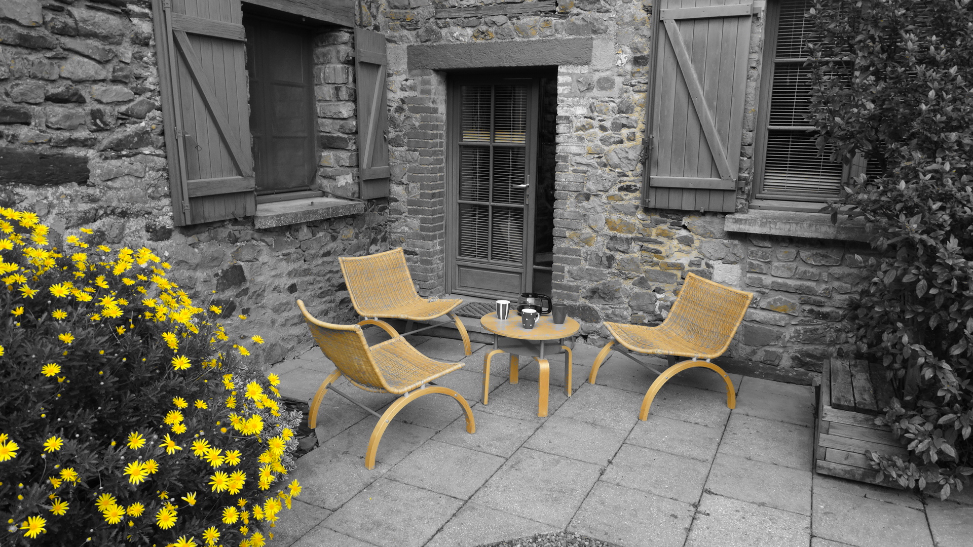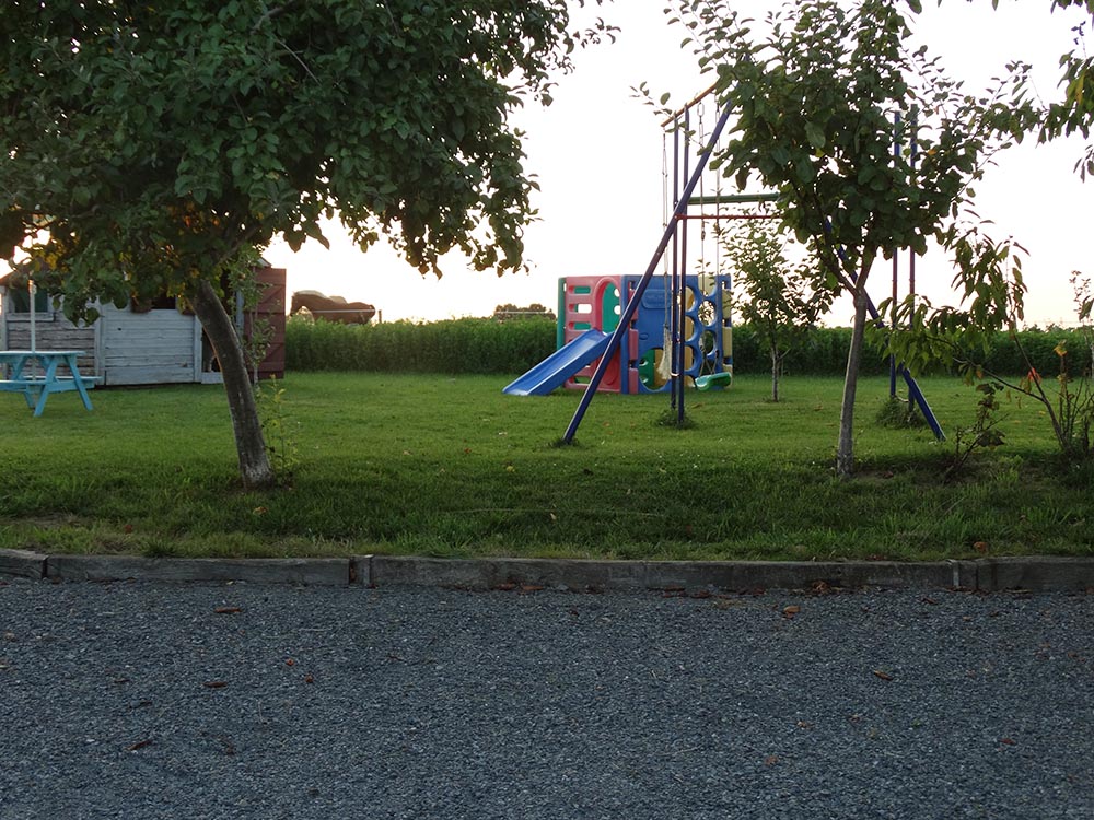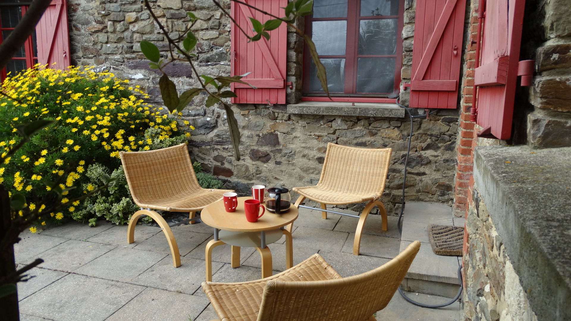 Deux terrasses privatives avec salon de jardin, table de pique-nique et barbecue. Pelouse privative. Grand espace de promenade.